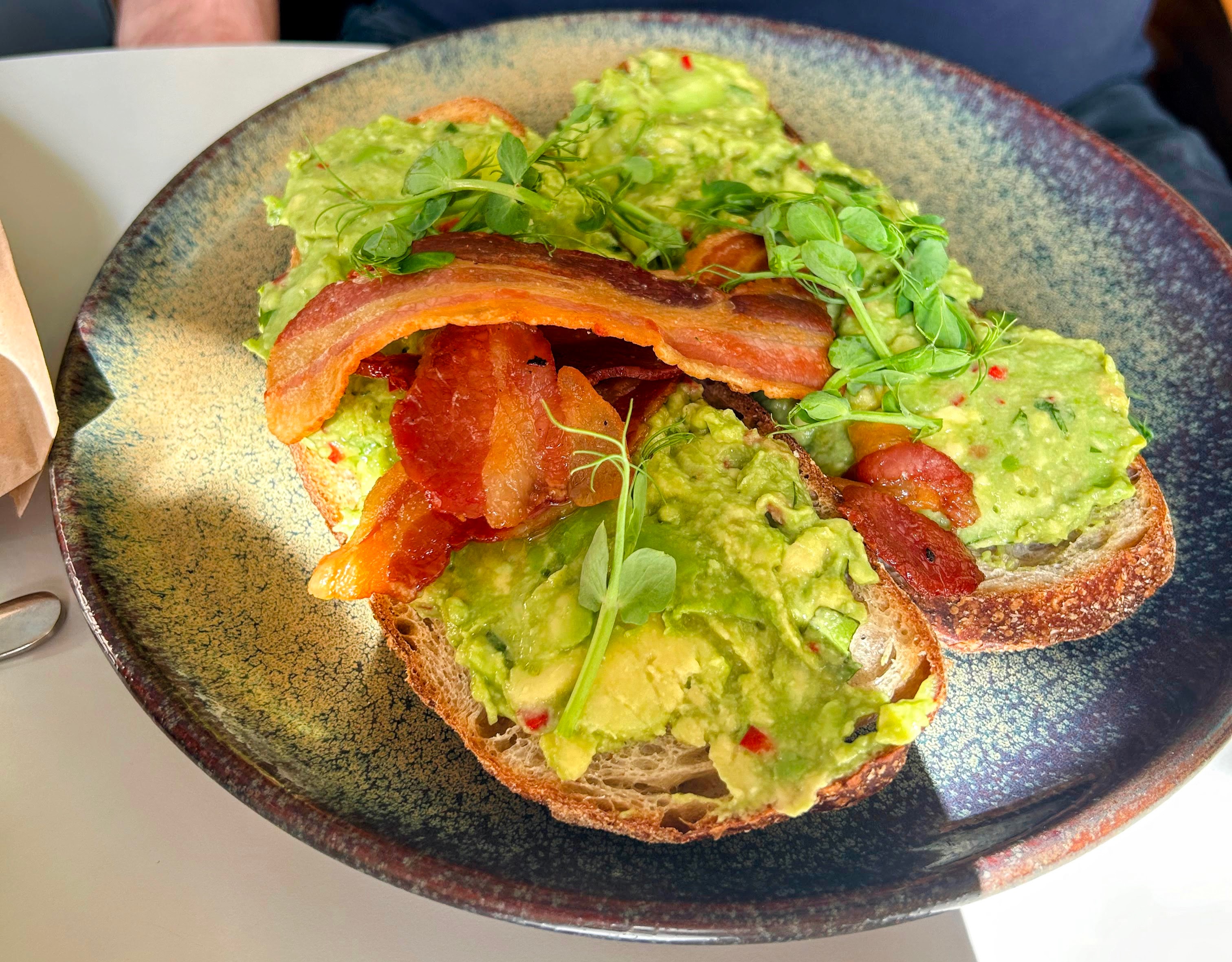 The breakfast menu is concise but not traditional. I went for the Rosti Bun with a side of carrot and pistachio cake and The Northerner went for the smashed avocado with added streaky bacon/pancetta. The Atrium have recently expanded their bakery selection and the cakes and bread proved tempting, we added a loaf to take home. This is a brave move as the risk of carrying these stock levels and potential for wastage are high, but I was happy to see the cakes flying out.