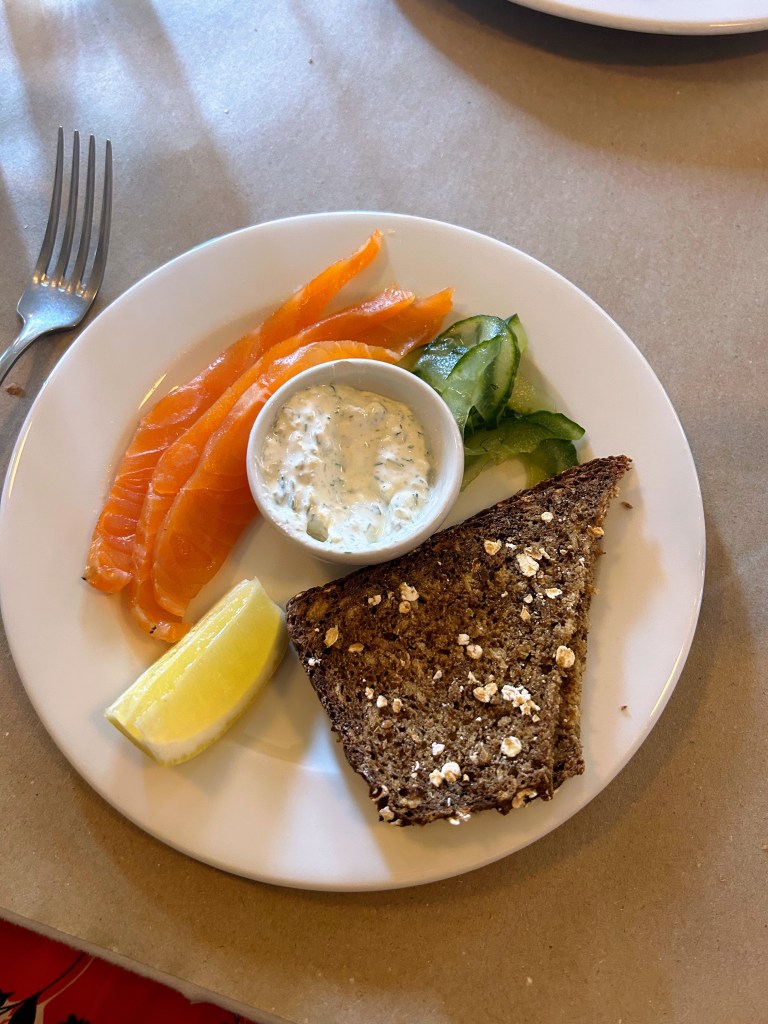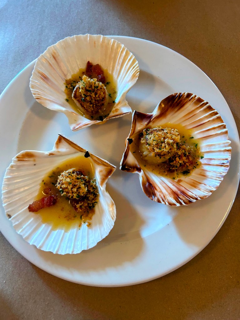 The scallops come in shell with bacon and malt vinegar and looked a little disappointing. All dishes were presented as simply as possible and we quickly realised why. The scallops were perfectly cooked, the bacon added salt and the vinegar added a bite that was like crisps on seafood. It sounds awful but they were the best scallops we’d ever eaten (we rarely agree on these things). The salmon was lightly smoked and flaked in the mouth, there was no hint of slime or meanness on the serving size. The pickled cucumber still had the freshness you want. The Northerner mentioned he’s pretty sure as a nation we got to 2005 before anyone decided to pickle things again after the crimes of the pickled egg at the chip shop. He has a point. The soda bread was soft and dense all at the same time but didn’t tempt me away from the homemade buttery rolls served when we arrived.