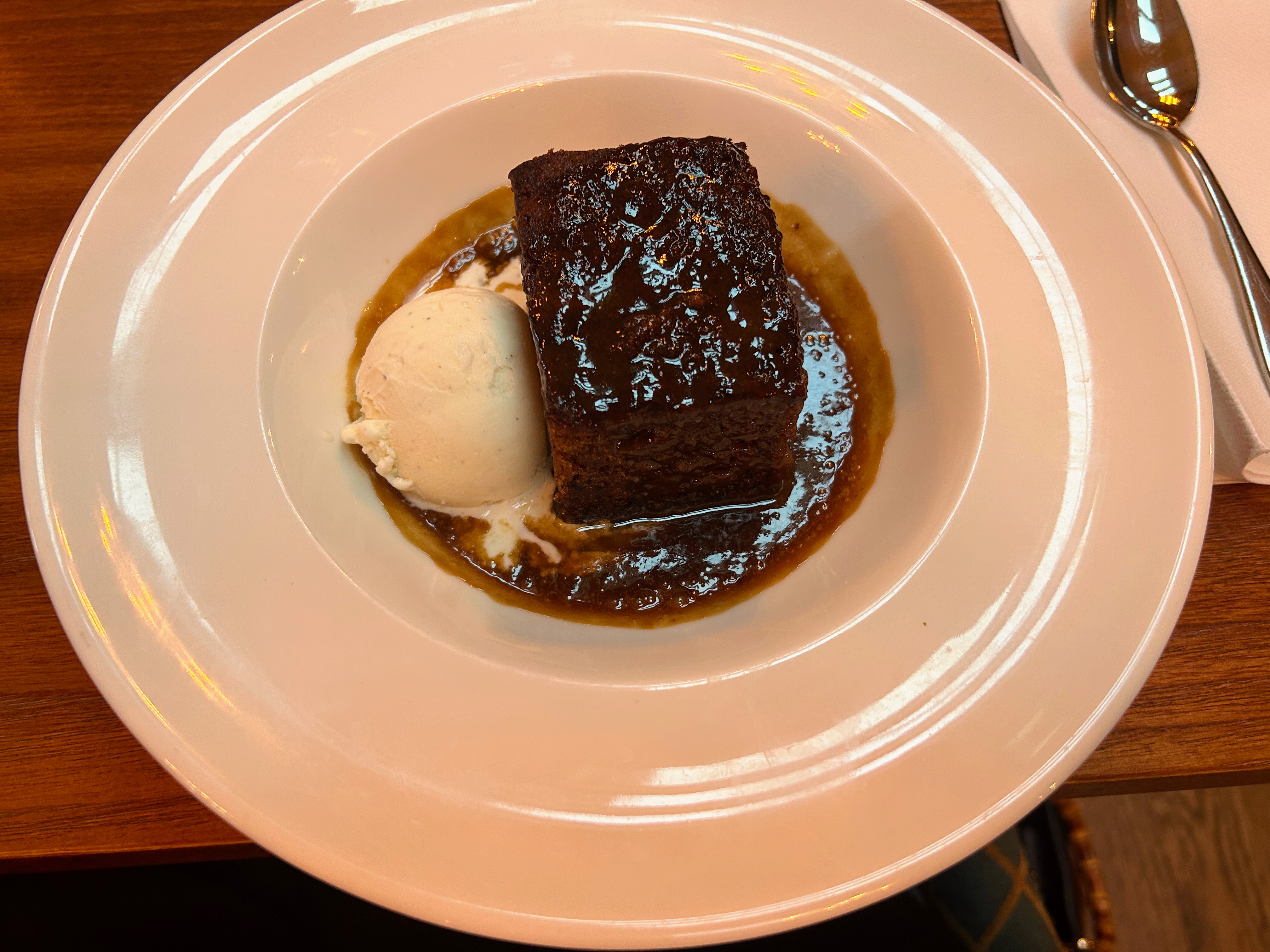 I finished with a sticky toffee pudding and at this point I wish there was some cutlery on the photo for scale as it was a housebrick size serving. The ice cream melting into the hot toffee sauce; shiny with sugar, was as appetising as it looked. I wonder if any gastro pubs in South Nottingham DON’T have sticky toffee pudding on their menu? Hopefully not.