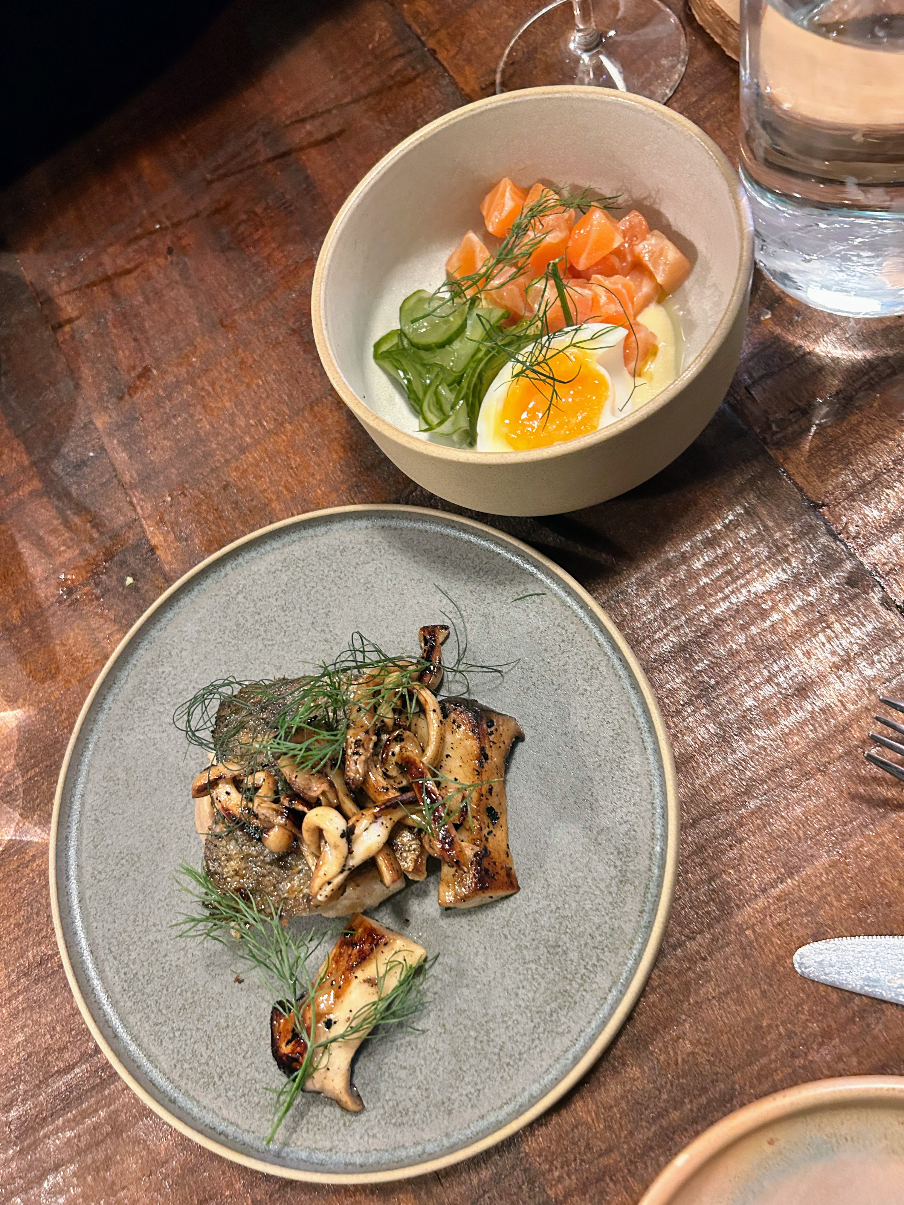 I had booked to go to Piccalilli as soon as I saw the reservation system go live, I had been following the transformation of the restaurant on Instagram and was really excited by the menu. We walked up the familiar alley (Piccalilli is in the old Kushi Ya) and ascended the stairs. Within a couple of minutes of arriving it was clear the staff were holding onto service by the skin of their teeth, customers waiting to be seated were queuing down the stairs. All the tables bar 2 were full and the 2 remaining were waiting to be cleared and reset. After a few minutes of being stood waiting the couple in front of us were acknowledged and taken to their table, we then waited another couple of minutes of watching staff pass before the same happened with us. We visited the restaurant on the second night it had opened, I was expecting all the issues you would associate with that (very busy, table mix ups, newly trained staff finding their feet, things coming in the wrong order) but an earlier acknowledgement would have been welcomed.