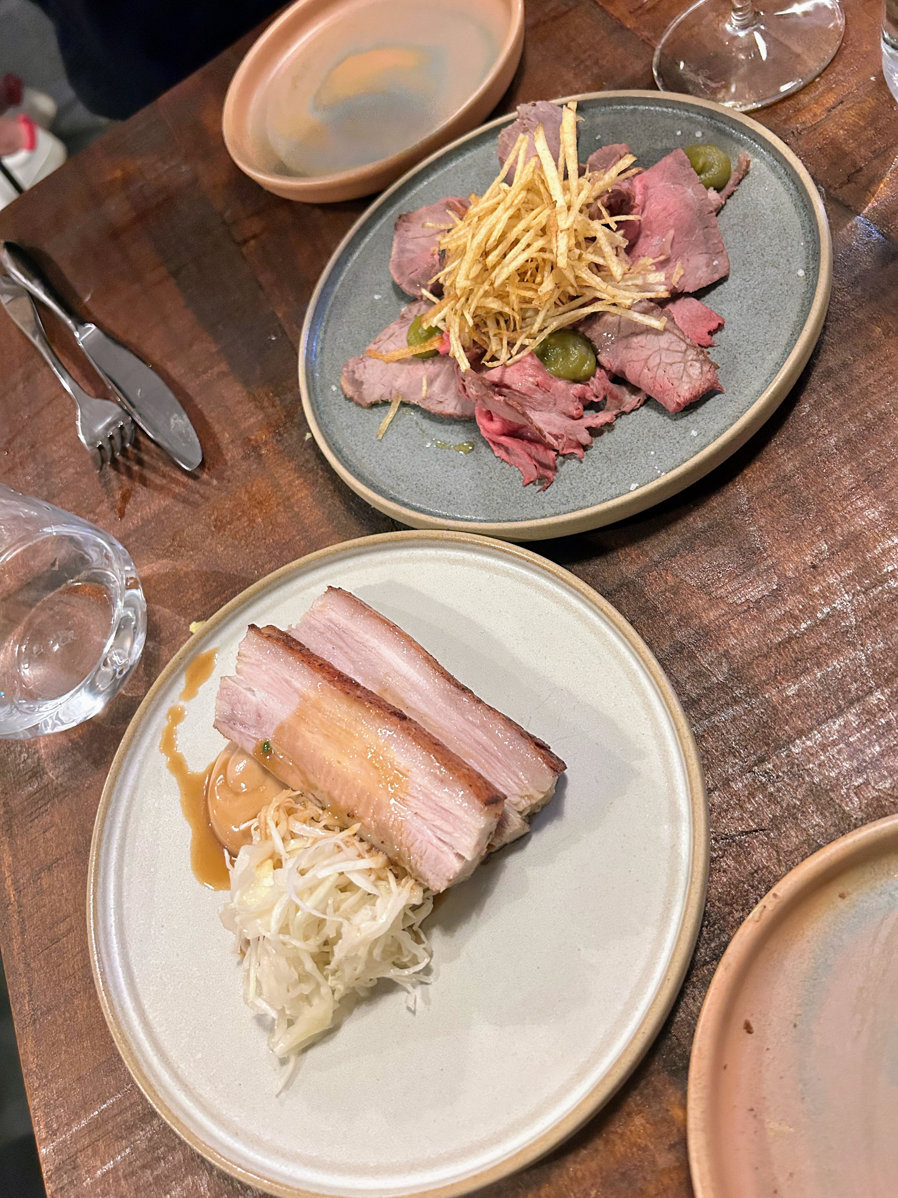 The meat dishes arrived together and unfortunately, had the same issue as the hash brown. Both were under seasoned and we wondered if it would be rude to ask for salt and pepper. The purees, saurkraut and ketchup were all packed with flavour but the meat and fries needed a hefty dose of salt.