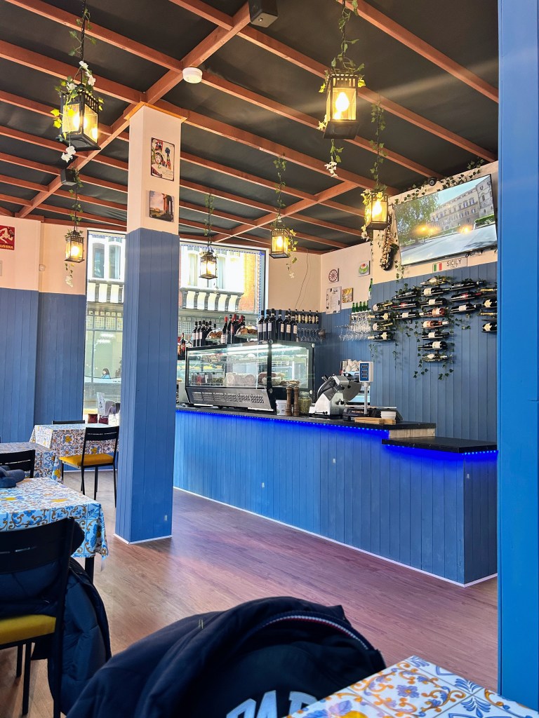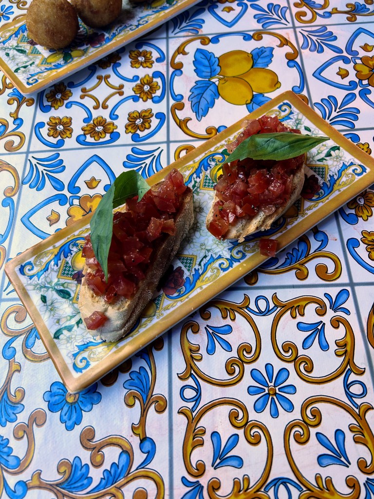 We were warmly greeted on arrival and told we could chose a table but the layout was a bit off – 3 tables of 4 were against the window with one table of 2 right next to the door. I was freezing so opted to sit as far from the door as possible but still left my coat on during the meal as it wasn’t warm (and I was driving so didn’t even have a booze coat). We ordered Bruschetta and Arancine for starters. The bruschetta was bursting with colour (contrary to the awful photos) and the warmth of the garlic rubbed on the bread elevated it. The Prosciutto and Mozarella Arancine tasted under seasoned at first but I enjoyed the warm stickiness of the cheesy rice. I crossed my knife and fork after one and then found myself asking The Northerner a minute later if I could have another. On returning for a second I realised they were quite addictive.