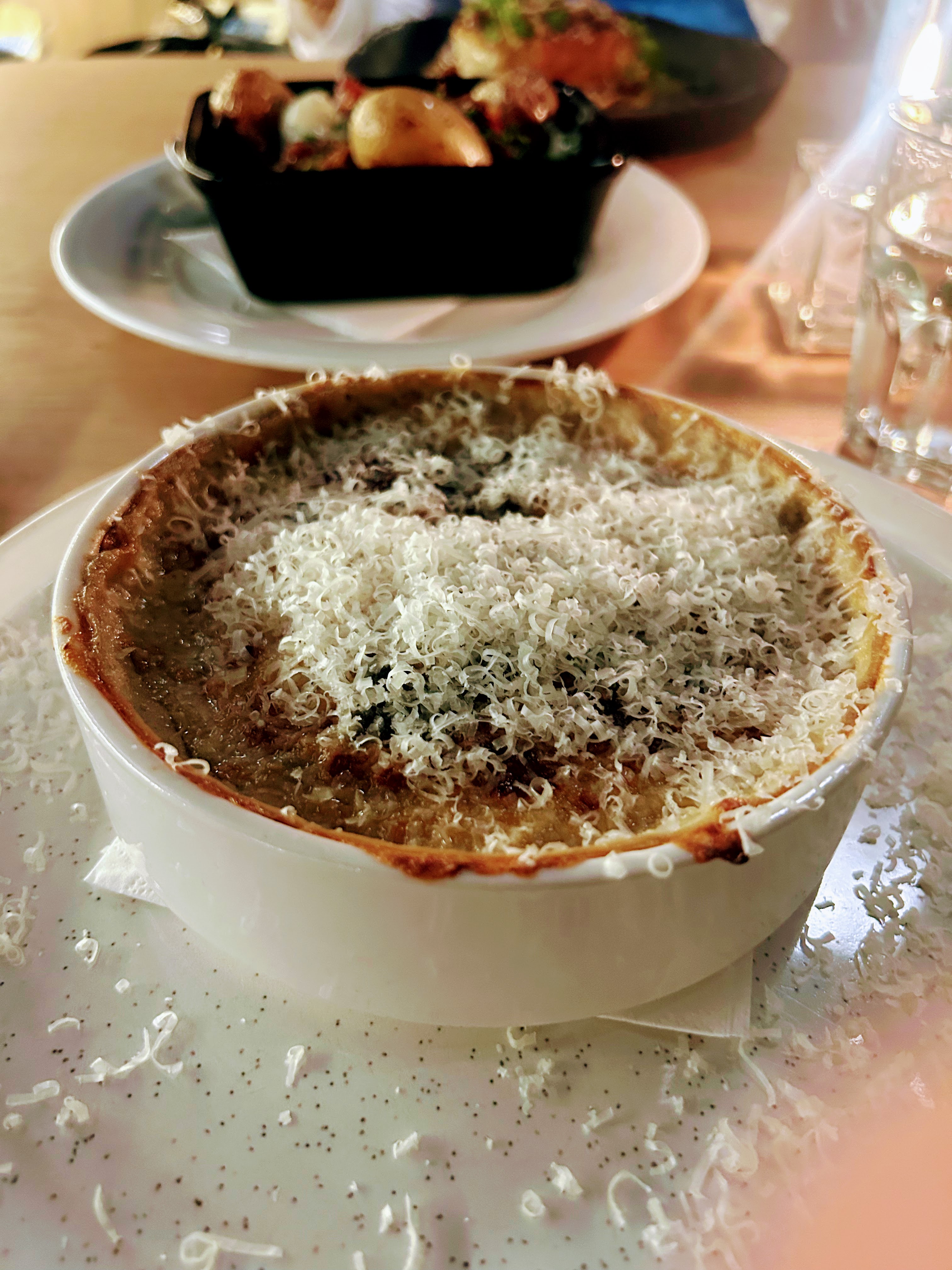 The Northerner explained to the waiter his hatred of mushrooms and the waiter started apologising profusely, we tried to reassure. This wasn’t their fault at all but could he get another pasta dish, whatever was quickest. ‘Of course’ said the waiter and within 5 minutes a new dish was delivered. It was the special from the blackboard and we both ended up finishing at the same time. The Northerner had also ordered a side of potatoes with cheese and bacon which he was too full to finish.